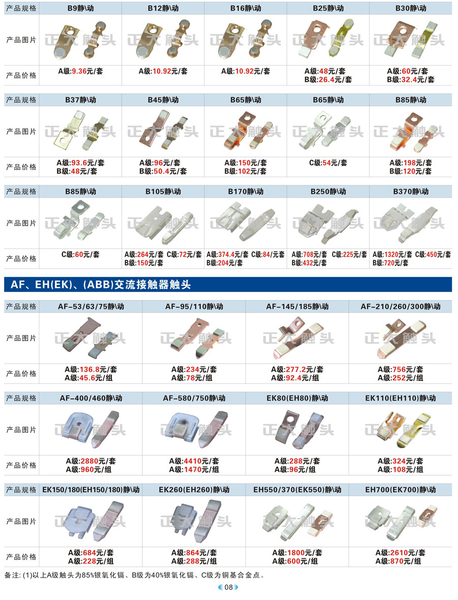 B交流、AF、EH(EK)、(ABB)交流接觸器觸頭