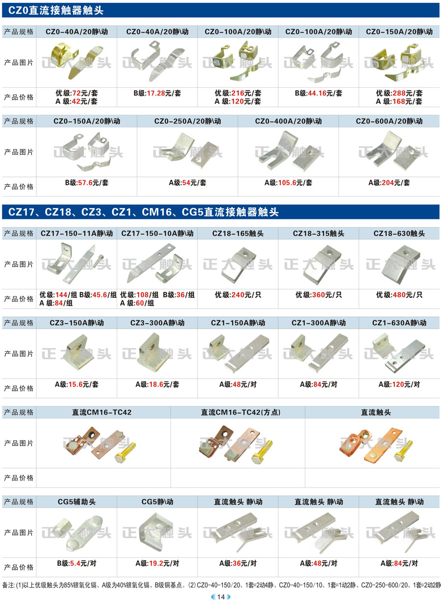 CZ0、CZ17、CZ18、CZ3、CZ1、CM16、CG5直流接觸器觸頭