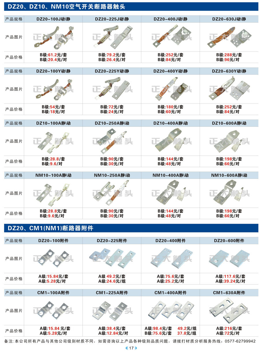 DZ20、DZ10、NM10空氣開關斷路器觸頭、DZ20、CM1(NM1)斷路器附件