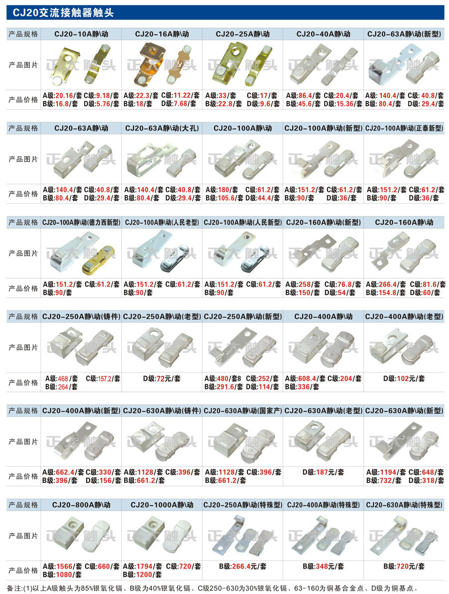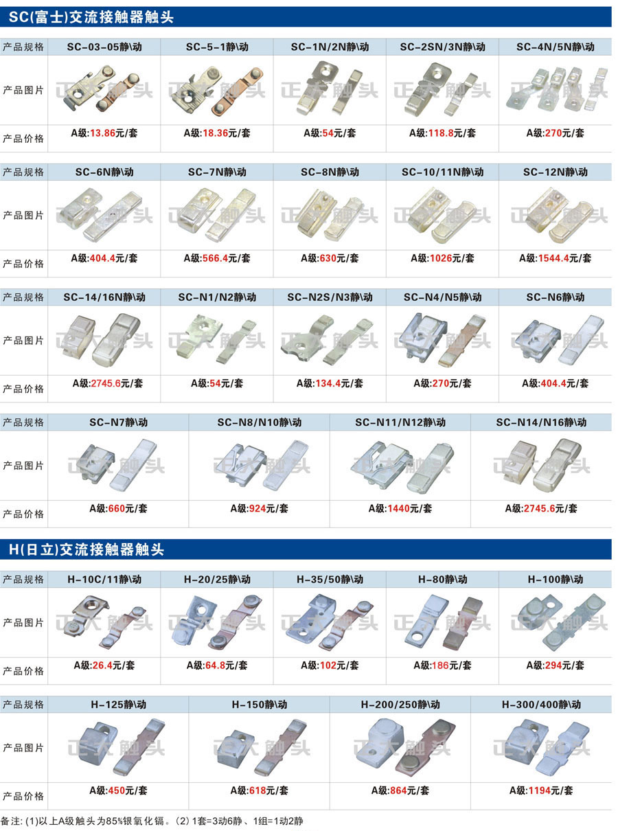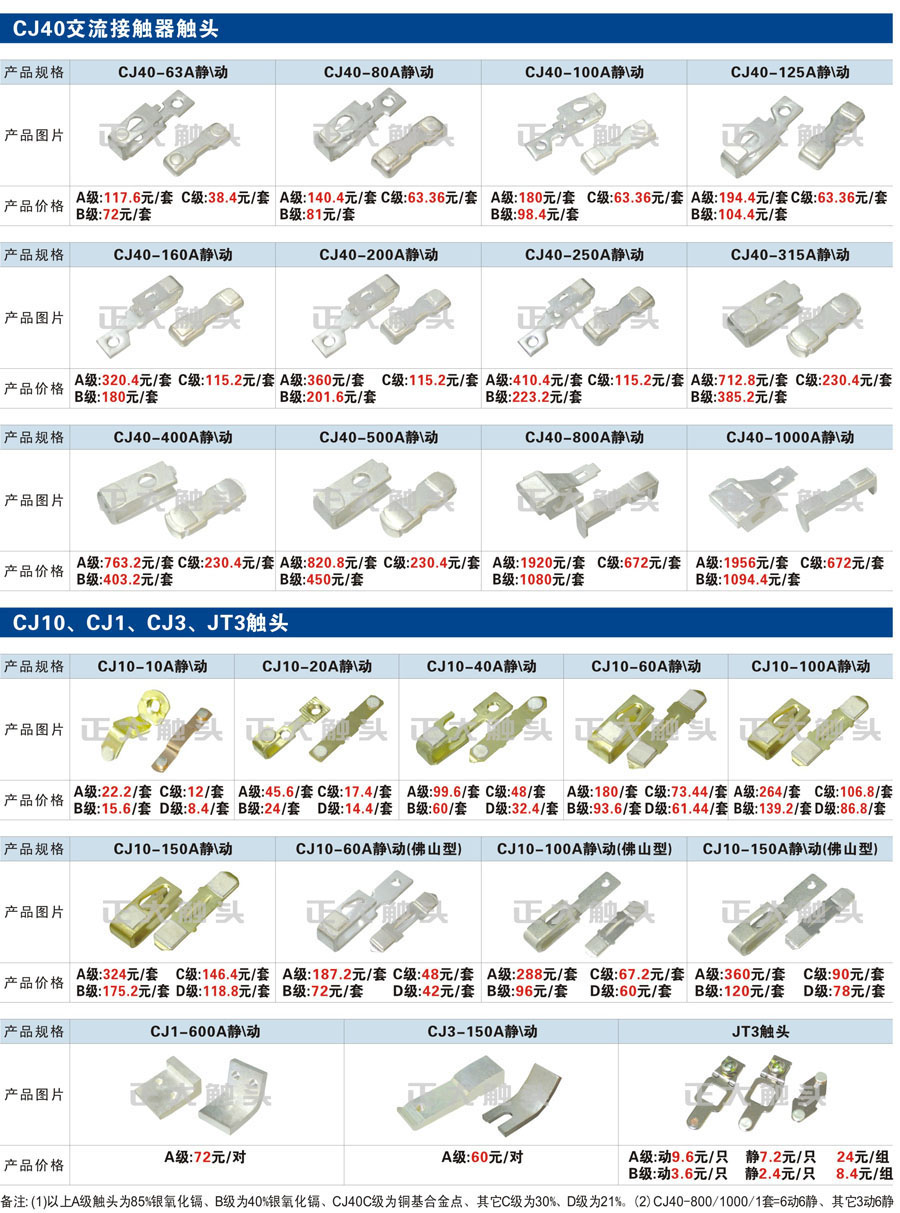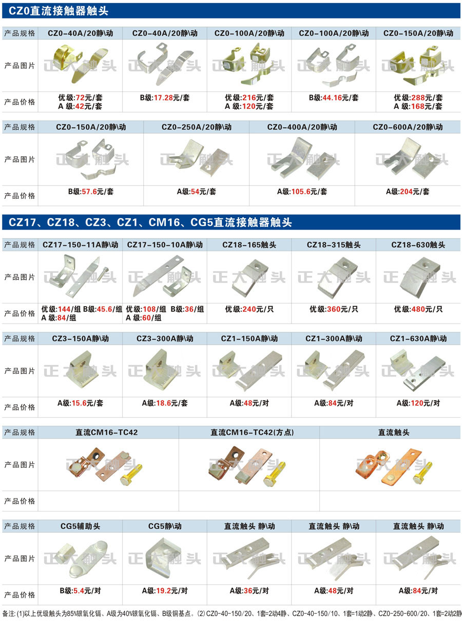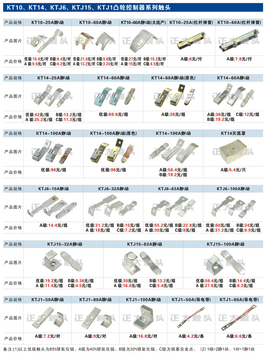 觸頭元件作為電器開(kāi)關(guān)核心元件,主要用于接觸器,繼電器,斷路器,凸輪控制器,補(bǔ)償器,行程開(kāi)關(guān),腳踏開(kāi)關(guān),輔助開(kāi)關(guān)等。正火電氣現(xiàn)生產(chǎn)CJT1,CJX1,CJX2,CJX4,CJX5,CJX8(B系列)CJ20,CJ40,CJ12,CJ15,CJ24,CJ24Y,CJ0,CDC10,CJ91,CT91,CJ913,CJ914,CJ3,CJ8Z交流接觸器觸頭,CZ0,CZ1,CZ3,CZ17,CZ18,CG5直流接觸器觸頭,QJ3,QC83補(bǔ)償器觸頭,凸輪控制器,主令觸頭,KT10,KT12,KT14,KTJ1,KTJ5,KTJ6,KTJ15(QT5),LK1,LK17,LK18,THQ1,TQKT等;斷路器觸頭DW10,DW16,DW15,DW17,DW45,DZ10,DZ20,內(nèi)燃機(jī)觸頭,礦用觸頭,叉車(chē),吊車(chē)觸頭,JYN1,JYN2,ZN28,SN10,VS1,梅花觸頭等。進(jìn)口ABB系列AF,EH,EK,富士SC系列,日立H系列,施耐德LC1系列,西門(mén)子3TF,3TB系列,LG公司(LS產(chǎn)電)GMC系列,三菱機(jī)電SN系列。與國(guó)內(nèi)正泰,德力西,天正,人民等,國(guó)外ABB,施耐德,西門(mén)子,富士,三菱等廠家電氣配套。