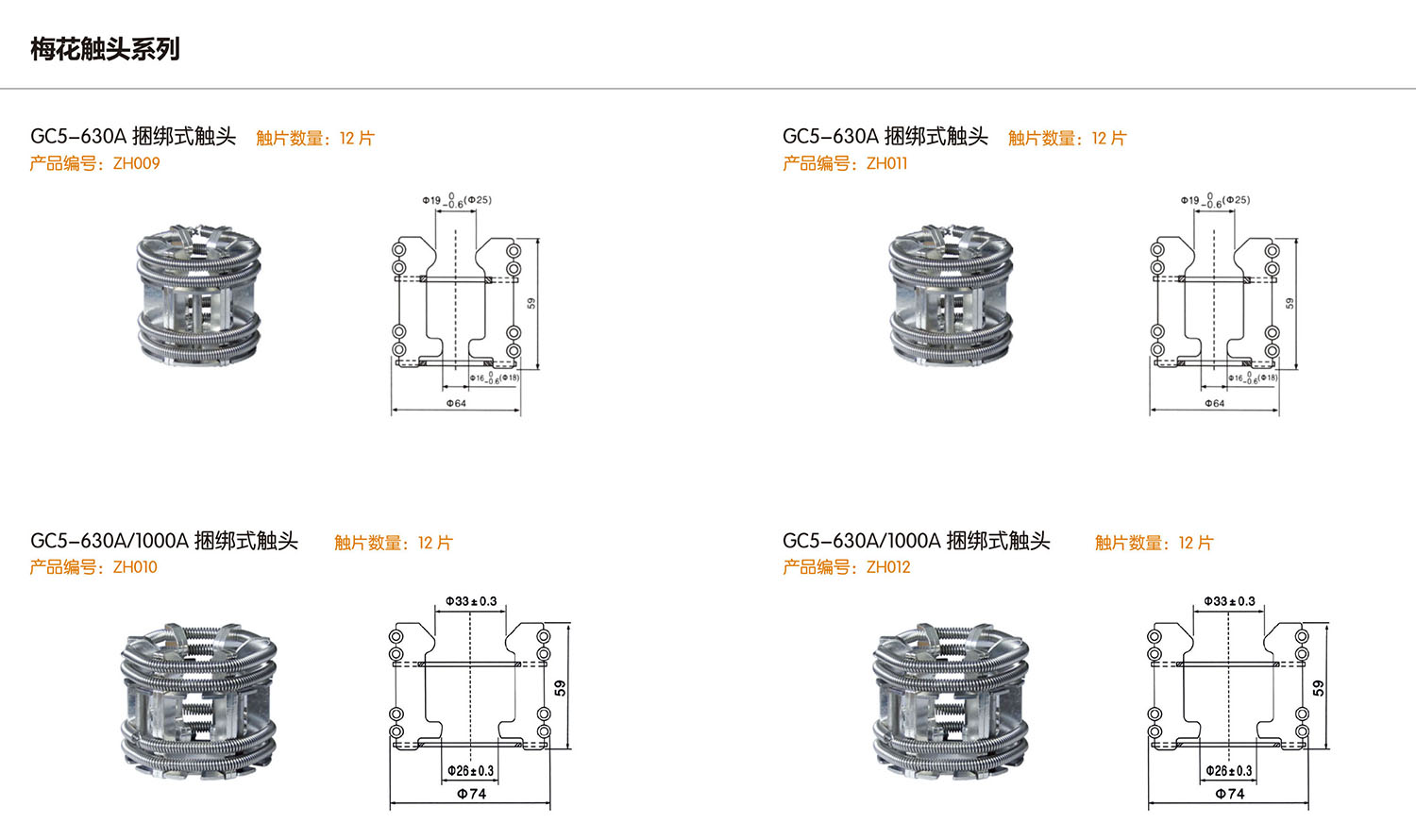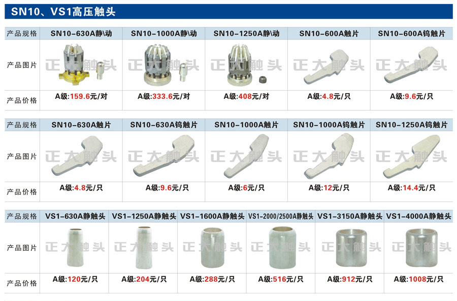二、高壓觸頭產(chǎn)品規(guī)格及圖片