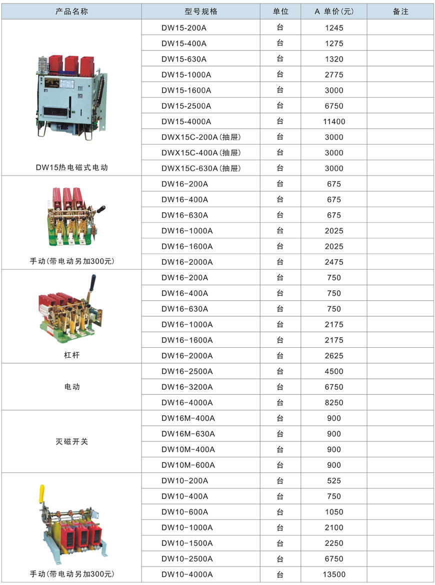 DW15、DWX15、DW16、DW10萬能式空氣斷路器