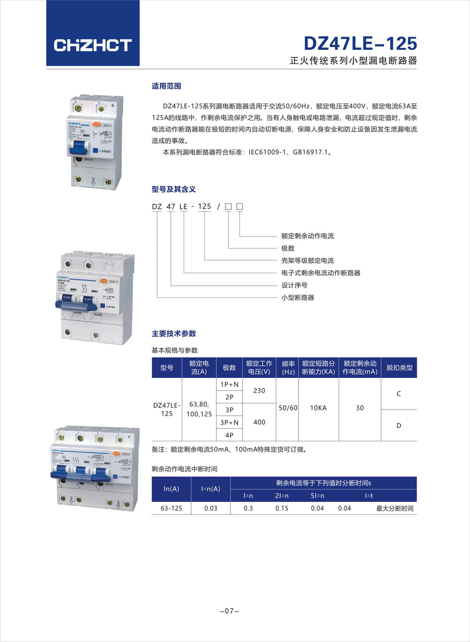 DZ47LE-125小型漏電斷路器