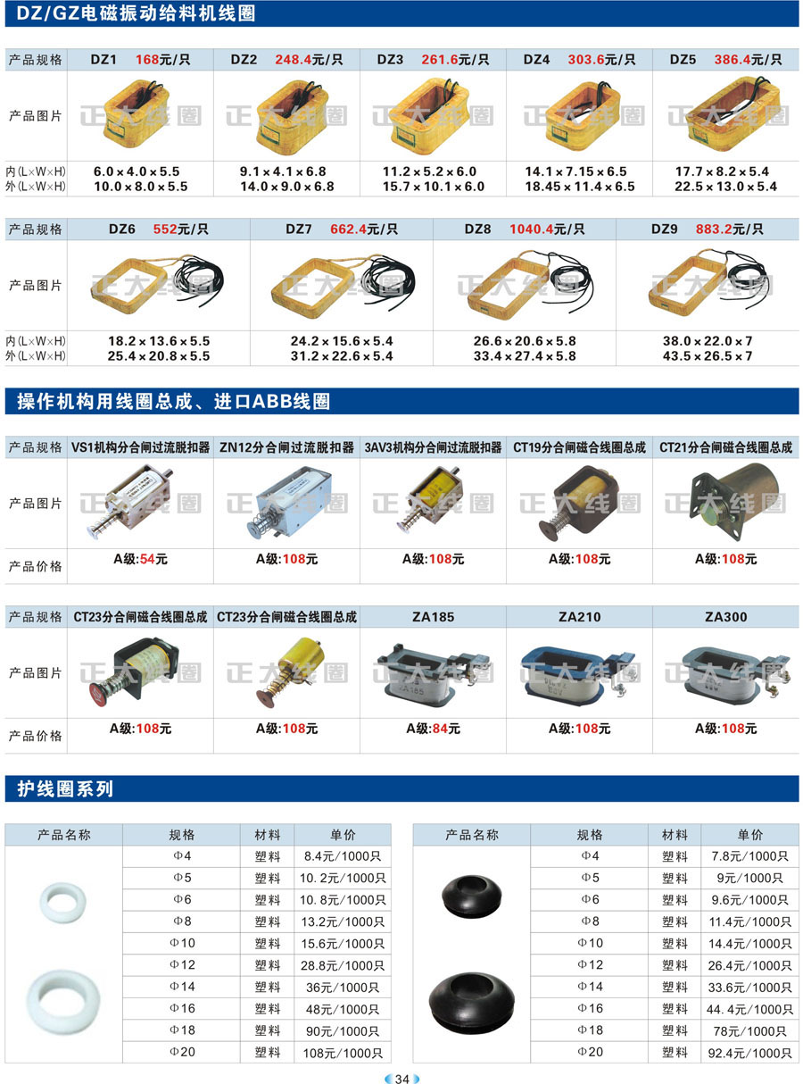 DZ/GZ電磁振動給料機線圈、操作機構用線圈總成、進口ABB線圈、護線圈系列 ?