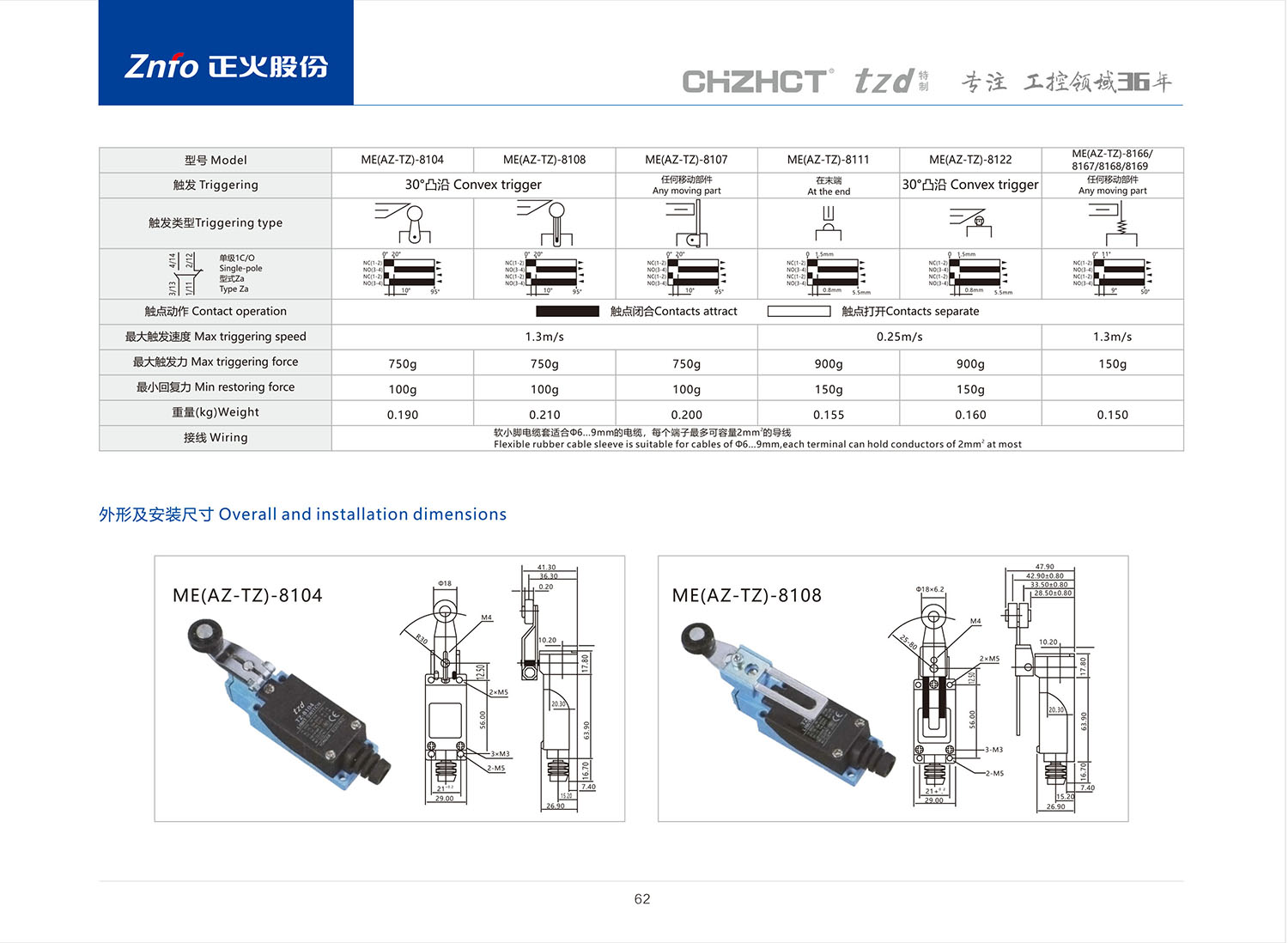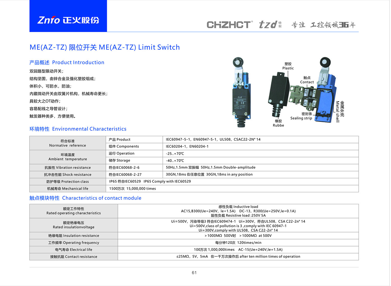 ME(AZ-TZ)限位開關產(chǎn)品說明書