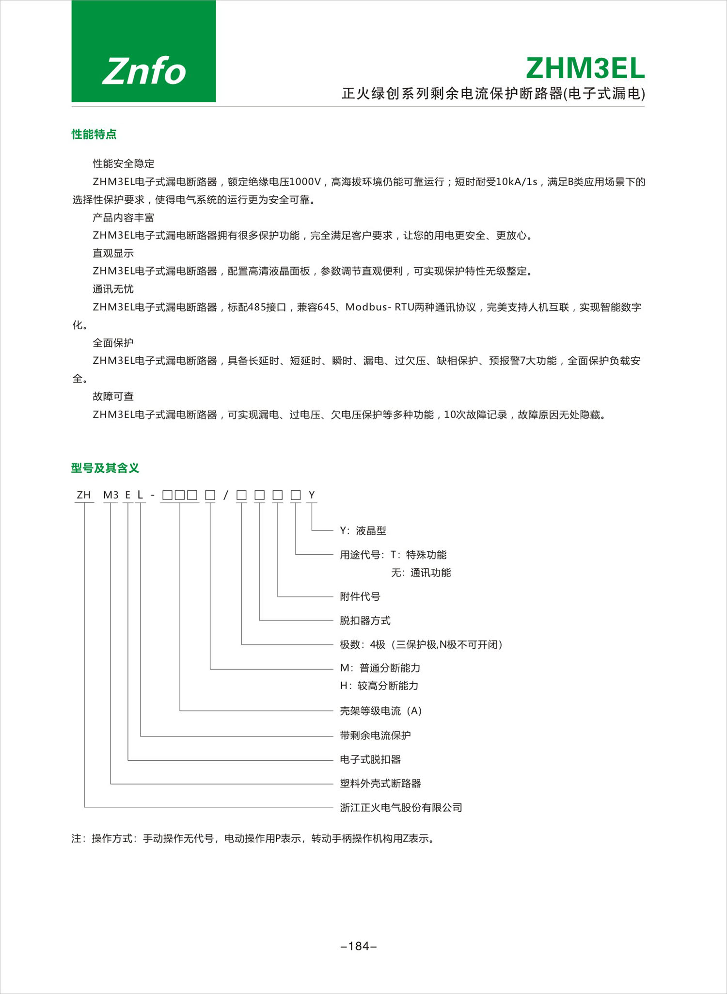 ZHM3EL系列剩余電流保護(hù)斷路器(電子式漏電)產(chǎn)品說明書